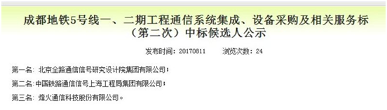 近日,成都地鐵5號線一、二期工程通信系統集成、設備采購招標結果揭曉,中國通號集團北京全路通信信號研究設計院有限公司攜手廣東創電科技有限公司中標,創電科技將承擔交流電源屏和UPS電源系統項目。